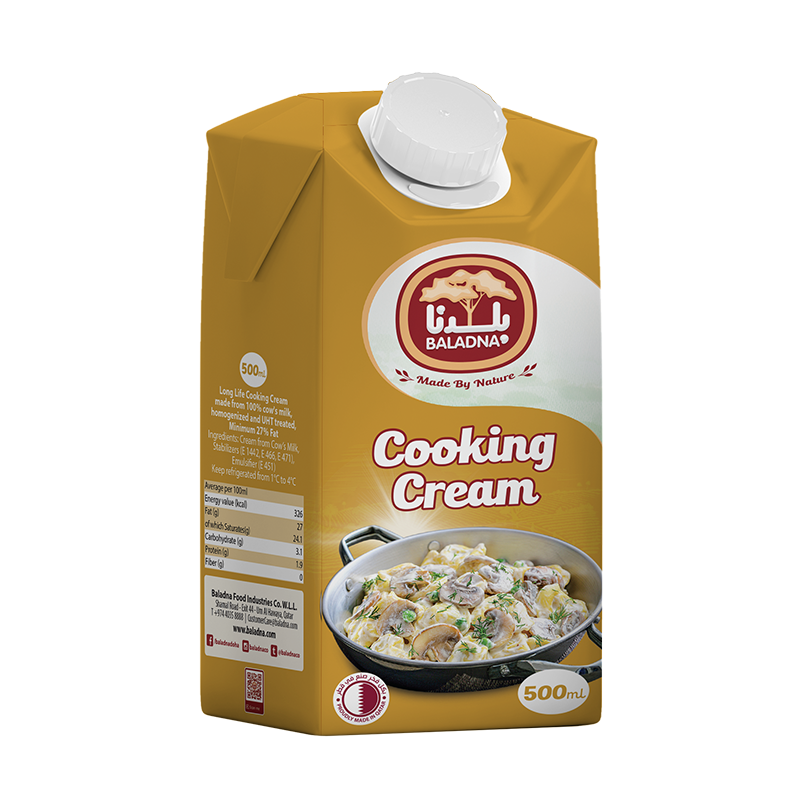 Baladna Cooking Cream light made from 100% cow’s milk, homogenized and UHT treated, Min. 15% Fat.